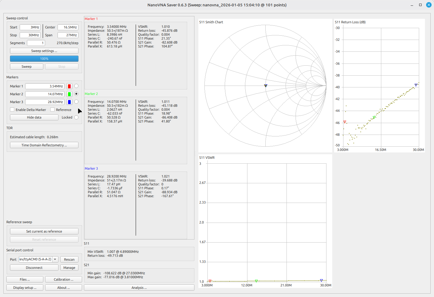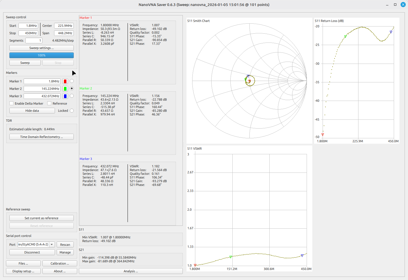 Using my nanoVNA, I also found the frequency / bandwidth spec's to be "aspirational" again. This shows clearly when comparing the Heath frequency range (to 2-metres/144MHz) with that of the MFJ (to 400MHz).